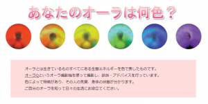 オーラQというオーラ撮影機を使って撮影し、今の心身のバランス状態とエネルギーレベルを診断・アドバイスを行っています。